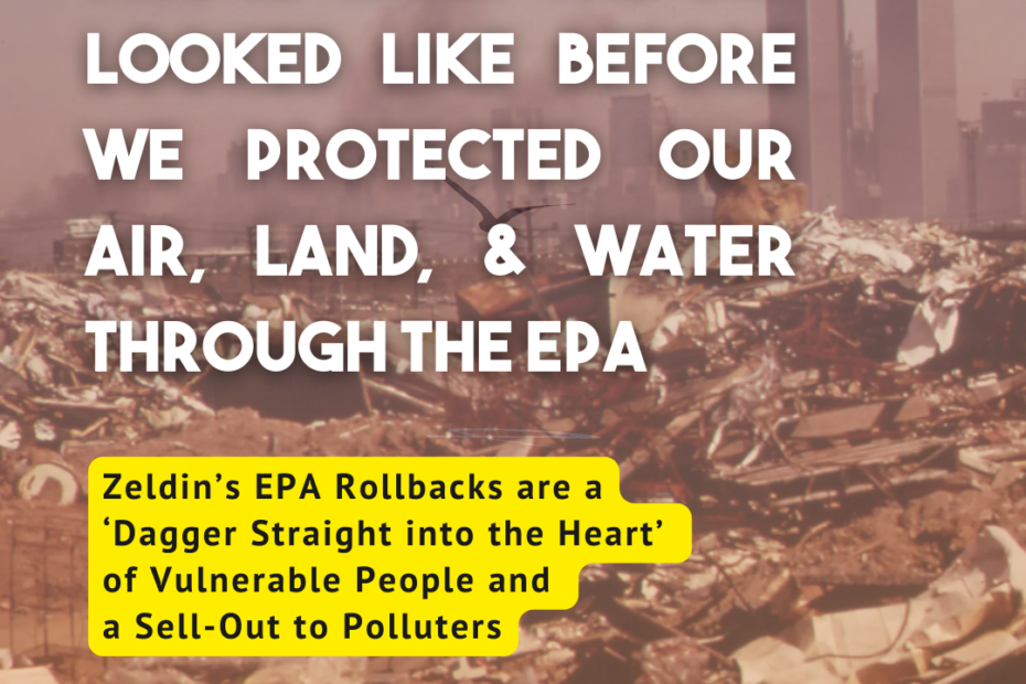Zeldin’s EPA Rollbacks are ‘Dagger Straight into the Heart’ of Vulnerable People and Sell-Out to PollutersMarch 13, 2025March 12, 2026News, Press Room